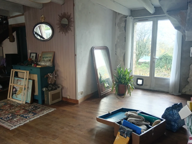 Le charmant village de Séglien vous propose cette habitation de 102 m2 à l'entrée du bourg, en pierres traditionnelles sous ardoises. Le rez-de-chaussée vous offre une salle à manger/cuisine, WC, salle d'eau, chambre/salon et appentis avec cheminée derrière. A l'étage une seule grande pièce qui pourrait être divisée en plusieurs compartiments. Le plus: les travaux effectués par des artisans locaux comme la pose d'un poêle à granules, ouvertures, ballon électrique et isolation toiture.... Certainement il reste des travaux de finitions à effectuer mais cette maison est habitable en état. Un jardin de 400 m2 vient de compléter le bien avec petite remise sur le côté. Tout-à-l'égout. Le bourg dispose un bar/épicerie, bureau de poste, magasin d'outils de jardinage et école primaire. A la recherche de quelque chose abordable, contactez-nous!