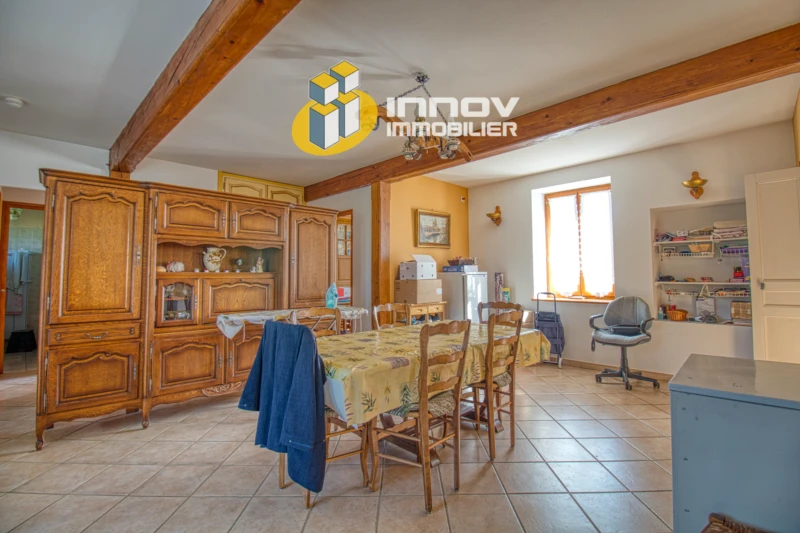 Votre agence INNOV Immobilier St Marcel a le plaisir de vous présenter en EXCLUSIVITÉ, sur la commune de Simandre à moins de 10 min de Tournus et 30 min de Chalon-sur-Saône, cette ancienne ferme à rafraichir de 155 m2 environ au prix de 185 000EUR (HAI) au coeur de notre charmante Bresse adorée. Vous recherchez une grande maison familiale avec du potentiel, sans travaux sur le gros oeuvre, possédant le caractère de l'ancien dans un environnement calme, vous avez la capacité de vous projeter alors n'hésitez pas à étudier cette bâtisse pour la rendre juste « CANON ». La maison se situe au coeur d'un beau et grand terrain de plus de 2800 m2 facile d'entretien, agréable, calme et verdoyant. Commençons la visite du bien, au rez-de chaussée vous découvrez une entrée qui dessert un espace salon/salle à manger de plus de 30 m2 donnant actuellement sur une cuisine indépendante de près de 15 m2 à refaire à votre goût, vous trouvez également une chambre, une salle d'eau et des toilettes. Un petit salon avec un insert bois vous permet d'emprunter l'escalier pour monter à l'étage. Vous pourrez apprécier le palier lumineux qui dessert trois chambres de 12 à 24 m2., des toilettes et une salle de bains. Vous manquez d'espace ?? Par une des chambres vous avez accès au grenier aménageable sur plus de 60 m2 avec la découverte de cette magnifique charpente. Cette ancienne ferme vous offre un potentiel plus qu'intéressant, vous pourrez aménager, décorer et donner un nouveau souffle à cette bâtisse qui peut devenir juste « CANON ». À l'extérieur, vous pourrez profiter d'un beau et grand terrain bien réparti et exposé. Effectivement vous profiterez de beaux moments en famille et avec vos amis sur la terrasse à l'arrière de la maison sans vis-à-vis dans un cadre plutôt sympa. Devant vous pourrez garer plusieurs véhicules lors de vos réceptions, la maison possède des dépendances, un garage, un atelier pour bricoler, des espaces de rangements avec les anciens poulaillers et granges. La toiture a été refaite juste avant les années 2000, une partie des menuiseries a déjà été remplacée par du double vitrage. Des travaux seront nécessaires pour embellir cette belle endormie, pour améliorer les performances énergétiques (en priorité par le remplacement de quelques menuiseries, l'isolation de certaines pièces, etc.), le chauffage est assuré par des radiateurs électriques ajouté au confort de la chaleur de l'insert bois. L'assainissement est assuré par une fosse septique qui devrait être remplacé dans l'année qui suivra votre achat. Vous recherchez une maison avec du caractère sans travaux sur le gros oeuvre tout en vous permettant de rénover à votre goût, n'hésitez pas à me contacter pour échanger sur votre projet et programmer une visite : Sylvain, Directeur d'agence INNOV-IMMOBILIER St Marcel Honoraires charge acquéreur Les informations sur les risques auxquels ce bien est exposé sont disponibles sur le site Géorisques : www.georisques.gouv.fr