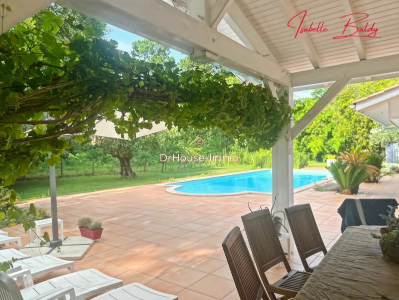 Isabelle Baldy, votre conseillère immobilier sur le sud des Landes, vous propose cette élégante propriété d’environ 150 m² (plus 30 m² garage et dépendances) avec grande piscine 12x5 (chauffée) sur un superbe terrain de 3000 m² paysagé et arboré sans vis à vis. Située à cinq minutes de la jolie ville de Soustons, cette splendide villa vous séduira par son agencement et toutes ses ouvertures qui la rendent très lumineuse. * Salon et séjour avec cheminée * Cuisine ouverte aménagée et équipée, arrière cuisine et local cave à vin. * Une chambre parentale avec salle de bain (douche, plus baignoire), et dressing * Deux chambres avec chacune leur salle d’eau. * Wc * Bureau * Lingerie * Grand garage pour 2 voitures * Nombreux placards * Aspiration intégrée Le merveilleux jardin vous invitera à vous prélasser devant la piscine Terrasse couverte avec four à pain, plancha et friteuse ! En résumé le calme, la sérénité, les matériaux de qualité et la luminosité vous invitent à poser vos valises dans cet écrin de verdure À visiter très rapidement Ce bien vous est présenté par Isabelle Baldy, votre conseillère indépendante Dr House Immo.