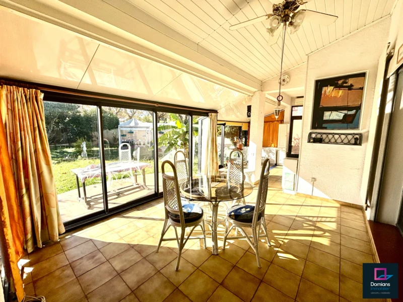 Située dans le secteur résidentiel recherché du Capellans, cette agréable villa 3 faces offre un cadre de vie calme et verdoyant. Elle se compose de deux chambres, dont une vaste chambre de 18 m2 prolongée par une loggia lumineuse, ainsi que d'une salle d'eau, d'une salle de bain et de deux WC indépendants. Le séjour spacieux avec cheminée constitue un véritable espace de convivialité, ouvert sur un jardin arboré et parfaitement entretenu, agrémenté d'une piscine. La maison dispose également d'un grand garage comprenant une cave à vin et une salle d'eau, ainsi qu'une mezzanine climatisée pouvant servir de chambre d'appoint. Un cellier, un atelier et un forage viennent renforcer le confort et la fonctionnalité du bien. Les panneaux solaires apportent un atout énergétique appréciable. Une villa pleine de charme, offrant de beaux volumes et de nombreux espaces annexes, idéale pour vivre au calme dans l'un des quartiers les plus prisés du Capellans.