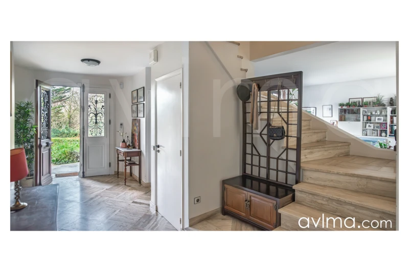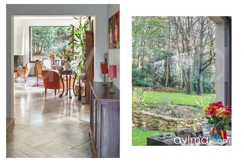 Cette maison d'architecte de 250 m2 située à 5 km de Saint Germain en Laye dans la commune de Louveciennes offre, à seulement quelques minutes de toutes commodités, un cadre de vie exceptionnelle et le calme absolu d'une petite forêt. Le rez de chaussée s'ouvre sur une belle entrée menant à un vaste sejour en 2 espaces ouverts agrémenté d'une cheminée et un bureau baigné de lumière grâce aux grandes baies vitrées. Une cuisine independante, une buanderie ainsi qu'une suite parentale sur 2 niveaux comprenant chambre, baignoire, douche et dressing complètent ce niveau. A l'étage, une mezzanine distribue 3 grandes chambres avec une belle hauteur sous plafond lumineuse ainsi qu'une salle de bain. Le sous sol propose une salle de jeux/sport, une cave, garage double ainsi que de grands espaces de rangements. Idéalement située, la maison se trouve à proximité des lignes de bus desservant la gare de Louveciennes, la villes du Chesnay, Versailles et Saint Germain en Laye. Très bien entretenu, la propriété offre également des possibilités de travaux pour révéler tout son potentiel.