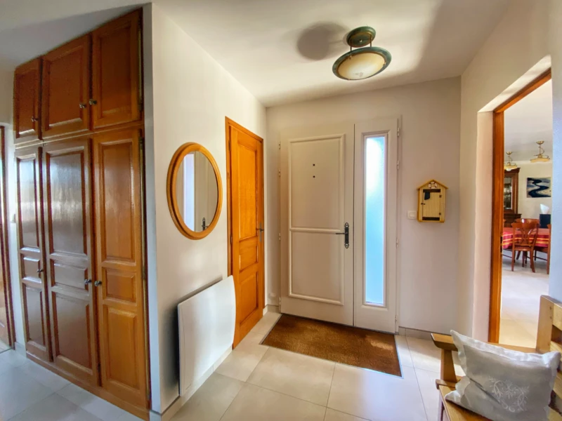 En exclusivité à l'agence, entre Saint Jean Pied de Port et Saint Étienne de Baïgorry venez à la découverte de cette magnifique maison en excellent état d'entretien construite en 2001. Cette maison sur deux niveaux est composée au rez-de-chaussée d'une entrée, d'un espace séjour / salle à manger avec insert à bois, d'une cuisine, d'une buanderie, d'une salle de bain, d'un WC indépendant, de deux chambres (une actuellement utilisée en bureau) et d'un garage entièrement carrelé avec coin cuisine et mezzanine. À l'étage nous retrouvons un dégagement desservant deux spacieuses chambres, une salle d'eau avec WC et une partie rangement/dressing. Côté extérieur, vous profiterez des beaux jours avec une magnifique vue sur les montagnes depuis la terrasse en partie couverte. Un stockage à bois et une réserve accompagnent le bien. La maison est équipée de menuiseries en double vitrage avec moustiquaires, d'un système de récupérateur de chaleur pour l'insert permettant de chauffer l'étage et de radiateurs électriques à inertie. Aucun travaux à prévoir. La surface du terrain est de 1216m2. Récupérateurs d'eau de pluie et assainissement individuel. Nous contacter pour plus d'informations ! Les informations sur les risques auxquels ce bien est exposé sont disponibles sur le site Géorisques : 'www.georisques.gouv.fr'