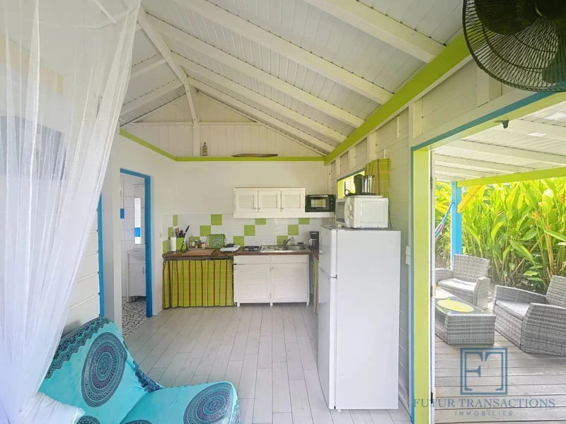 Bungalow avec piscine à 5 minutes de la plage À seulement 5 minutes de la célèbre plage de la Caravelle à Sainte-Anne, ce charmant bungalow est une véritable pépite, nichée dans un écrin de verdure. Un cadre paisible et tropical pour profiter pleinement de la douceur de vivre caribéenne ! Copropriété intimiste de seulement 11 lots, sécurisée par un portail avec place de parking extérieur. Ce bungalow de type T2, de 21,79 m2 en surface Carrez (32,06 m2 de surface totale) se compose d'une terrasse abritée, un séjour cuisine équipée avec électroménager neuf , une salle d'eau avec toilettes et une chambre climatisée avec placards. La parcelle est entièrement clôturée au sein d'un petit jardin tropical dont vous avez la jouissance exclusive avec une douche extérieure. Le bien est vendu meublé clé en main. A propos de la copropriété : la quote-part de charges mensuelles s'élèvent à environ 130euros par mois incluant internet, entretien des communs et de la piscine, eau et électricité. Pour ce qui est des espaces communs vous bénéficiez d'une jolie piscine et d'une terrasse avec transats, idéal pour vous rafraîchir en fin de journée. Les plus : citerne d'eau tampon et groupe électrogène tout y est pour assurer un confort optimal! Investissement locatif rentable, pied à terre ou résidence principale à vous de choisir ! Etiquette énergétique : classe A. Aucune procédure en cours menée sur le fondement des articles 29-1 A et 29-1 de la loi n°65-557 du 10 Juillet 1965 et de l'article L.615-6 du CCH. Le prix de vente comprend les honoraires charge Acquéreur : 6% TTC du prix du bien hors honoraires. Prix de vente hors honoraires : 183 000 euros. Alors n'hésitez pas à nous contacter au +590 690 68 26 46 pour de plus amples informations ou accéder au reportage photos complet. Les risques auxquels ce bien sont exposés sont disponibles sur le site Géorisques : www.georisques.gouv.fr