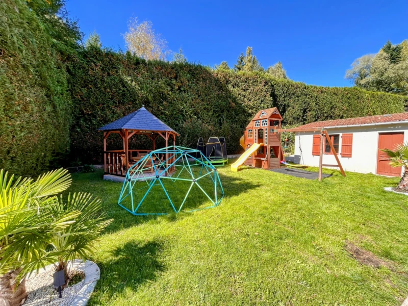 IMMODU19.FR / Proche de toutes les commodités, cette maison entièrement renovée se compose de plain-pied d'une entrée ouverte sur la piéce à vivre, une cuisine récente et équipée donnant accès à une terrasse, une chambre, une salle d'eau et un wc. À l'étage trois chambres, dont deux de plus de 17 m2, une salle de bain avec wc et une terrasse de 37 m2. Au sous-sol un garage, une pièce de jeu et une chaufferie. Le tout sur un terrain clos de 637 m2 avec une dépendance.