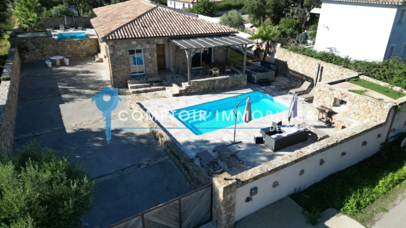 Villa parfaite pour allier confort et convivialité en intérieur comme en extérieur ! Cette villa T4 (3 chambres) de style bergerie d'une superficie habitable de 91 m2 habitable, habillée en pierres de taille sur une parcelle de 595 m2 non loin des premières plages, seulement 3 minutes en voiture de la plage de QUARCIONE. Caractéristiques de la villa: Intérieur : Une cuisine ouverte entièrement équipée, un cellier pratique pour vos rangements et stockage, un salon salle à manger lumineux avec accès sur la terrasse couverte. Le coin nuit, deux chambres avec placards aménagés une salle de bain, une suite parentale avec placard et salle d'eau privative. Extérieur : Terrasse couverte de 13 m2 avec charpente en bois réalisée par les compagnons du bois idéale pour profiter en journée comme en soirée. Piscine en coque polyester d'une superficie de 8x4 avec un système de traitement au sel et dotée d'une pompe à chaleur pour nager été comme hiver, entourée de 100 m2 de plage entierement carrelée et arborée avec goût. Parcelle clôturée et équipée d'un portail électrique avec digicode. Cette villa dispose d'un très bon rendement locatif, estimation AIRBNB disponible. (Possibilité d'être vendue meublée) Cette annonce vous est proposée par Mme. Amélie PERALDI - EI - NoRSAC: 817 908 098, Enregistré au Greffe du tribunal de commerce de BASTIA COMPTOIR IMMOBILIER DE FRANCE - Plus d'informations sur cif-immo.com - « Les informations sur les risques auxquels ce bien est exposé sont disponibles sur le site Géorisques : www.georisques.gouv.fr »