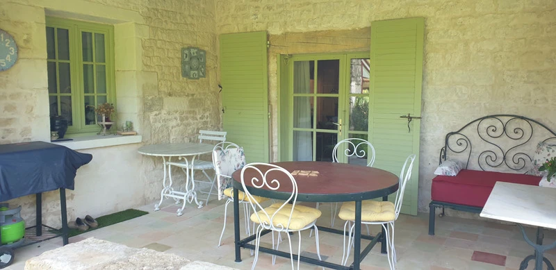 Proche de la vallée du Lambon, pousser la porte de cette charmante maison de pays nichée dans un écrin de verdure avec de nombreuses dépendances, piscine, une maison annexe divisée en deux appartements duplex loués. Une allée de cyprès vous invite dans une spacieuse cuisine qui dévoile son caractère avec ses tomettes au sol et poutres apparentes. Vous déambulez ensuite dans la salle à manger, avec ses boiseries, donnant sur une terrasse ouest et une serre avec vue sur le verger. Le salon s'offre à vous et s'ouvre par une baie vitrée sur une terrasse sud avec un accès vers la piscine. Du salon, vous accédez à l'étage à une mezzanine, puis à 5 chambres, salle d'eau accessible également par un escalier principal descendant dans la grande cuisine. Au rez de chaussée, vous disposez d'une salle d'eau. Une pièce avec sauna vous laisse la liberté d'un usage soit de bureau, salle de sport, chambre. Les dépendances se composent d'une grange, d'un atelier lumineux avec verrière et son jardinet et four à pain, d'un 2ème atelier et d'un préau à voitures. Les honoraires d'agence sont à la charge de l'acquéreur, soit 4,00% TTC du prix hors honoraires. Les informations sur les risques auxquels ce bien est exposé sont disponibles sur le site Géorisques : www. georisques. gouv. fr. Réseau Immobilier CAPIFRANCE - Votre agent commercial (RSAC N°529 629 842 - Greffe de NIORT) Christophe CLISSON Entrepreneur Individuel 06 89 52 84 80 - Réf.920831