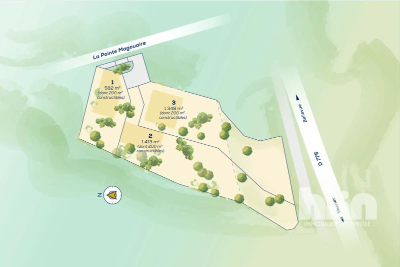 À VENDRE TERRAIN CONSTRUCTIBLE ET VIABILISE 1348 M² Dans un petit lotissement de 3 lots Situé au sud de Saint Nolff, à 5min de Vannes, terrain arboré de 1346m², dans un cadre verdoyant. L'emprise au sol des constructions ne pourra pas excéder 50 % de la superficie du lot. La surface de plancher maximale autorisée est de 200m² par lot. Honoraires inclus de 5% TTC à la charge de l'acquéreur. Prix hors honoraires 155 000 €. Les informations sur les risques auxquels ce bien est exposé sont disponibles sur le site Géorisques : georisques.gouv.fr.