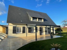 Au calme et à quelques minutes des commerces, cette maison de plain-pied comprend : une cuisine ouverte sur un séjour-salon avec poêle à bois, un cellier, trois chambres, une salle de bains et un WC. Maison très éc...